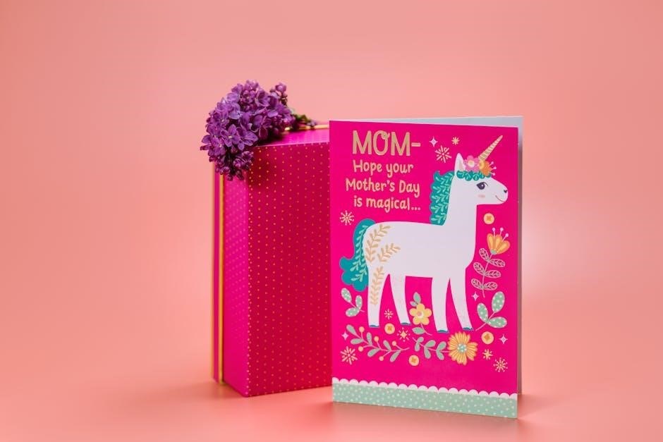 Consider placing the card inside a decorated envelope or alongside a breakfast-in-bed tray; For children, a drawing accompanying the card adds extra charm. The presentation demonstrates the effort and love poured into creating this unique gift, making Mother’s Day even more memorable.